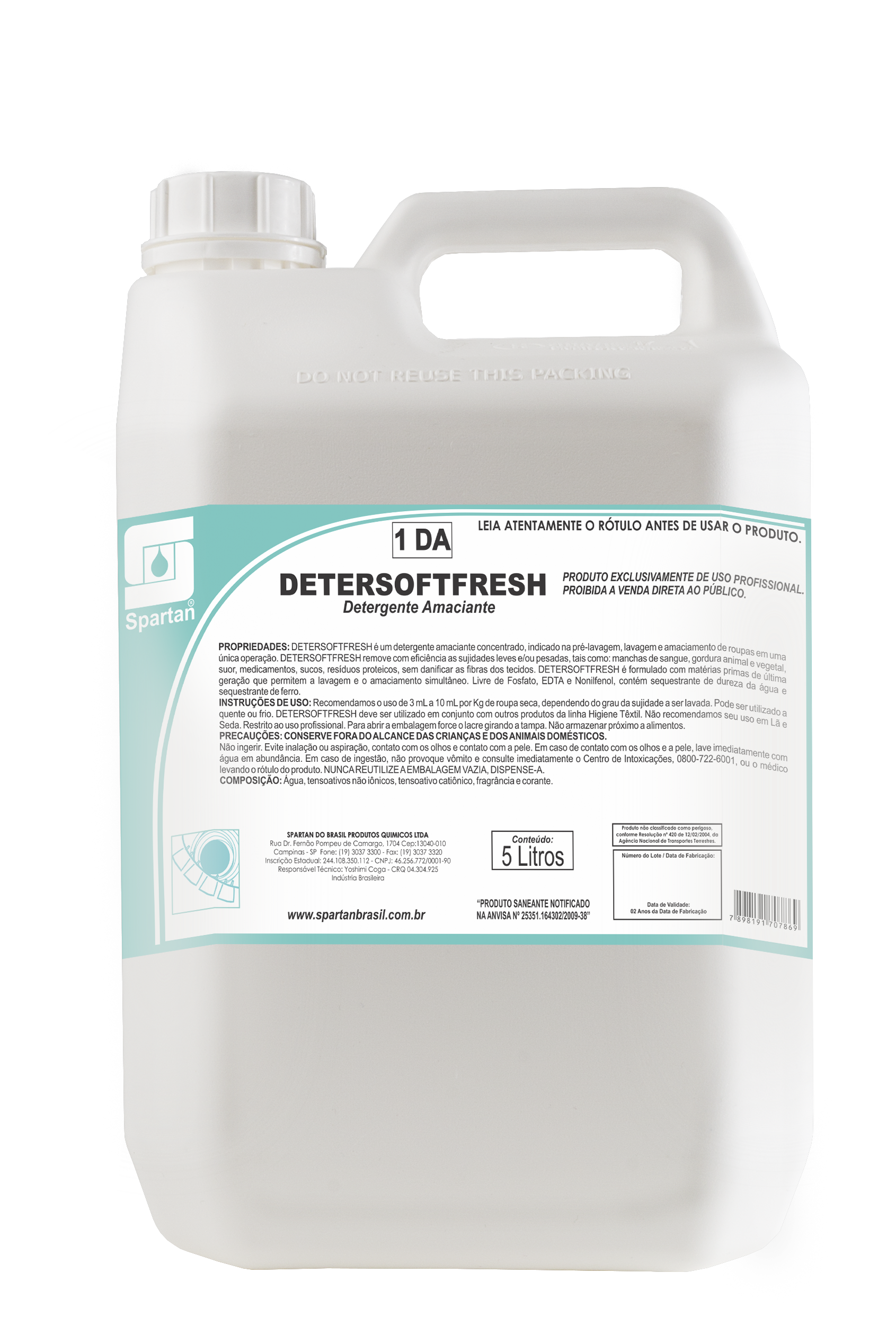 DETERSOFTFRESH é um detergente amaciante concentrado, indicado na pré-lavagem, lavagem e amaciamento de roupas em uma única operação.