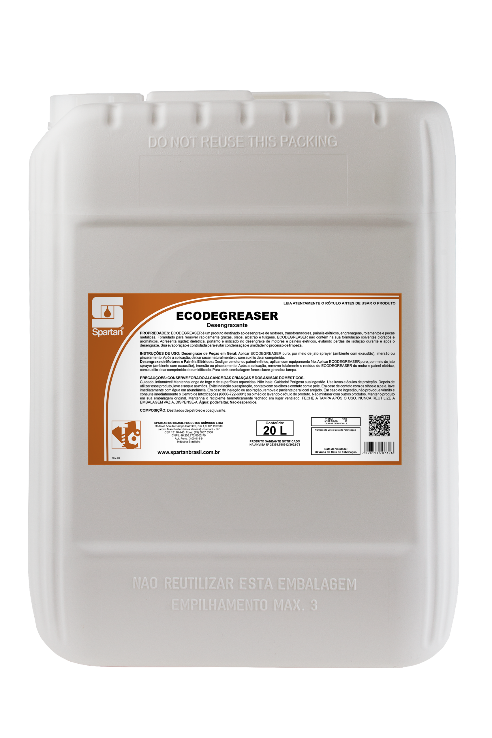 ECODEGREASER não contém na sua formulação solventes clorados e aromáticos. Apresenta rigidez dielétrica, portanto é indicado no desengraxe de motores e painéis elétricos, evitando perdas de isolação durante e após o desengraxe. Sua evaporação é controlada para evitar condensação de umidade no processo de limpeza.Instruções de uso:
