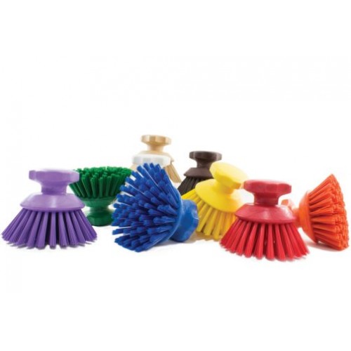 Fabricado em bloco de plástico estrutural de formato redondo e com fibra PBT de 1 9/16 ”(3,97 cm) e rigidez média. Esta escova é ideal para a limpeza de correias transportadoras, recipientes para alimentos, potes e recipientes em geral. Seu design permite que o usuário pressione com mais força durante o uso, conseguindo assim uma limpeza mais eficaz.
