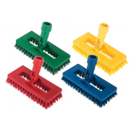Escova giratória para limpar rodapés, paredes, ao redor de equipamentos de cozinha e áreas de difícil acesso onde as máquinas de piso não podem alcançar. As cerdas de poliéster resistem à água, altas temperaturas, ácidos, álcalis e à maioria dos produtos de limpeza.