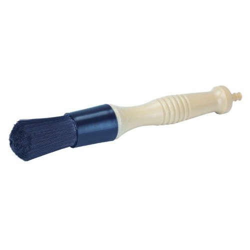 Escova de alta durabilidade para limpeza de peças na indústria automotiva, composta por fibras rígidas de PBT com extremidades curvas coladas com resina epóxi. Seu sistema de escoamento interno de líquido, com saída entre as fibras, torna esta escova adequada para uso com bomba de circulação para lavagem de solventes, conectada por mangueira à estação de desengorduramento.