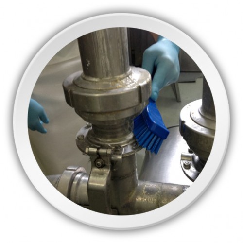 Escova multiuso para limpeza em linhas de produção e máquinas. Ideal para limpeza de calhas, máquinas, correias de transporte, etc.