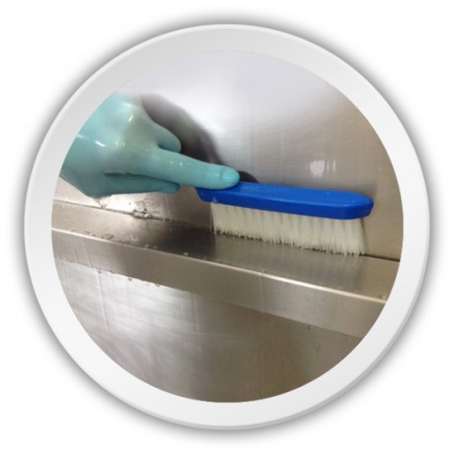 Escova multiuso para limpeza em linhas de produção e máquinas. Ideal para limpeza de calhas, máquinas, correias de transporte, etc.