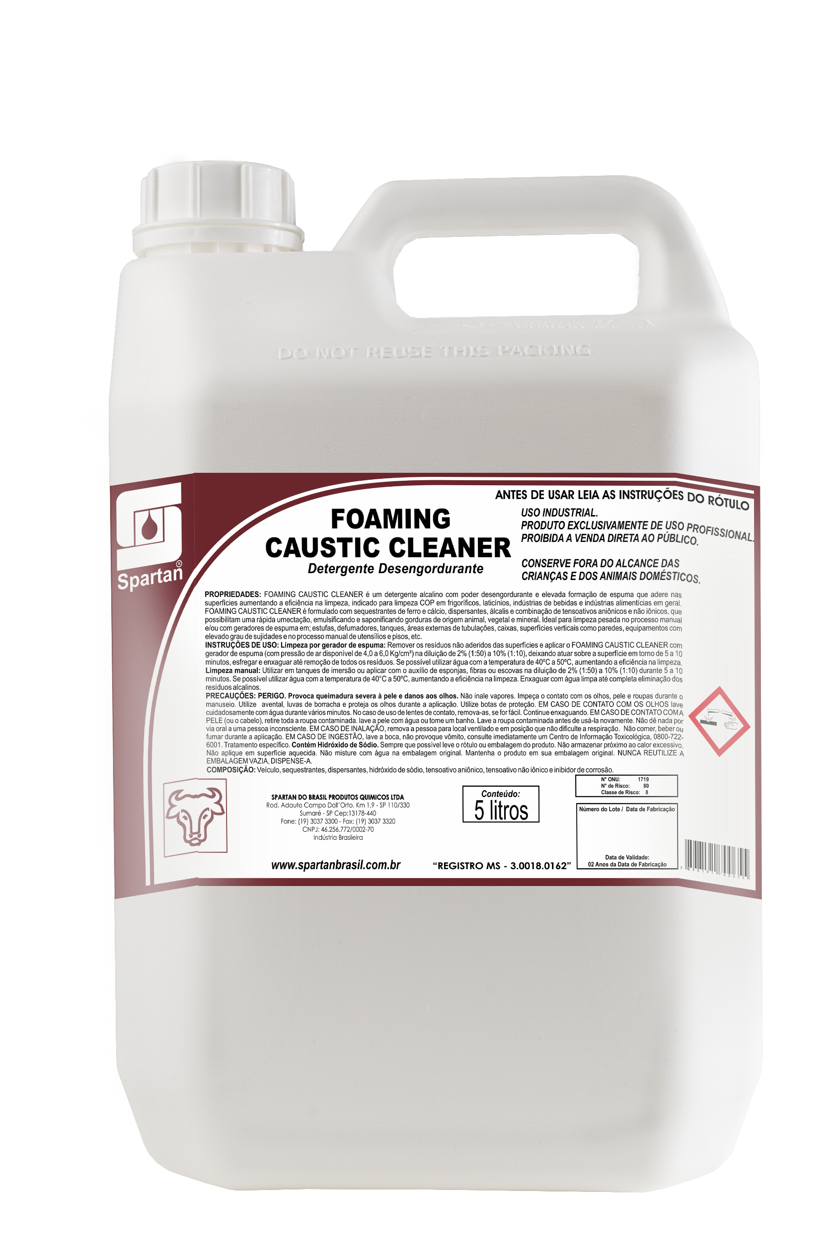 FOAMING CAUSTIC CLEANER é um detergente alcalino com poder desengordurante e elevada formação de espuma que adere nas superfícies aumentando a eficiência na limpeza, indicado para limpeza COP em frigoríficos, laticínios, indústrias de bebidas e indústrias alimentícias em geral. FOAMING CAUSTIC CLEANER é formulado com sequestrantes de ferro e cálcio, dispersantes, álcalis e combinação de tensoativos aniônicos e não iônicos, que possibilitam uma rápida umectação, emulsificando e saponificando gorduras de origem animal, vegetal e mineral. Ideal para limpeza pesada no processo manual e/ou com geradores de espuma em; estufas, defumadores, tanques, áreas externas de tubulações, caixas, superfícies verticais como paredes, equipamentos com elevado grau de sujidades e no processo manual de utensílios e pisos, etc.Instruções de uso: