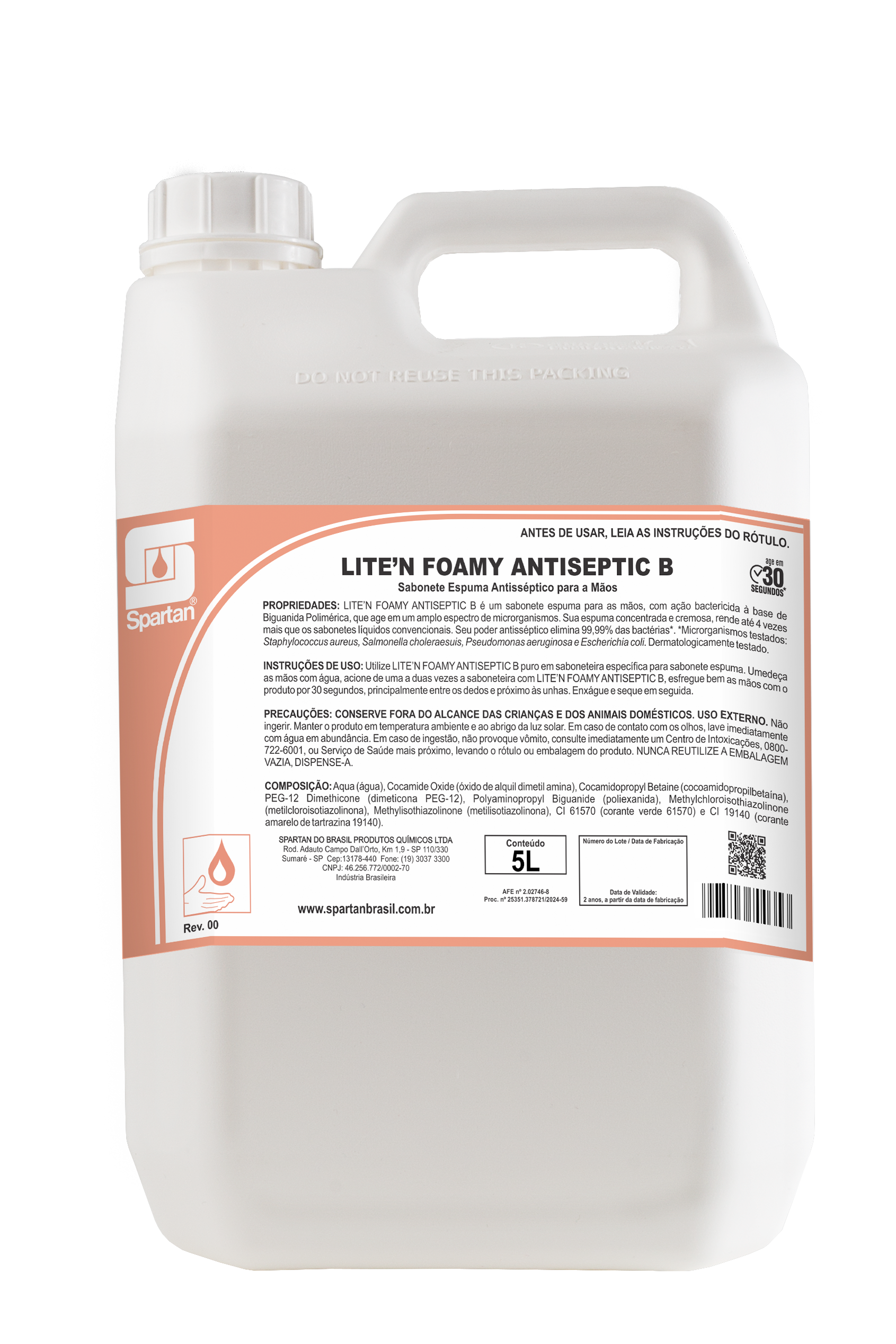 LITE’N FOAMY ANTISEPTIC B – Sabonete de Espuma Antisséptico (Biguanida) – (Pronto Uso) – 5 litros