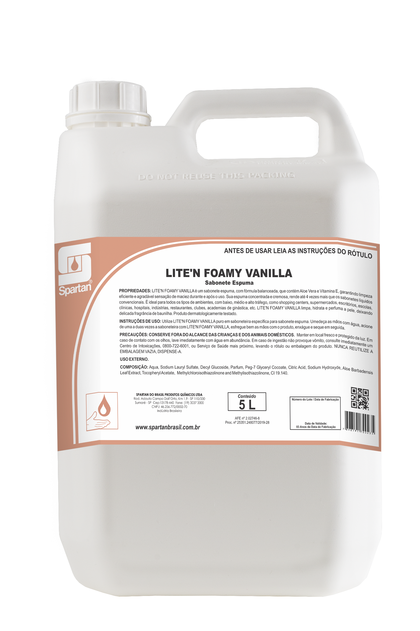 LITE’N FOAMY VANILLA – Sabonete Espuma – 5 litros