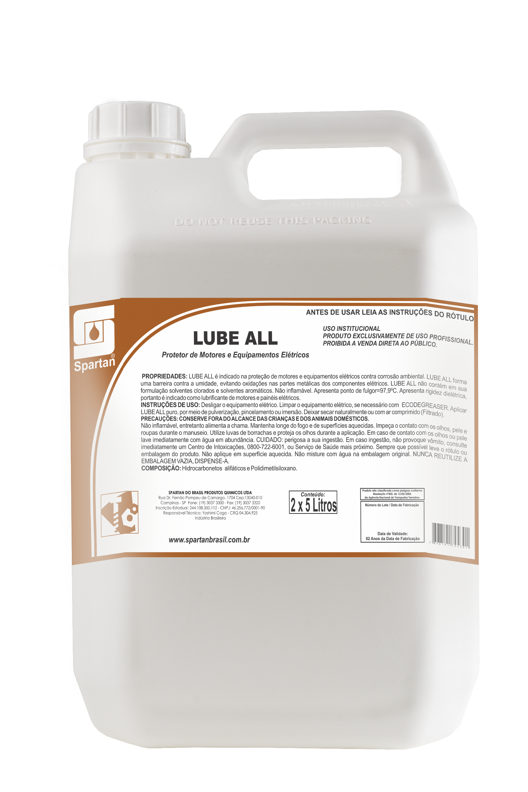 LUBE ALL é indicado na proteção de motores e equipamentos elétricos contra corrosão ambiental. Formulado com solventes e agentes lubrificantes LUBE ALL repele a umidade e lubrifica equipamentos, motores e painéis elétricos. LUBE ALL forma uma barreira contra a umidade, evitando oxidações nas partes metálicas dos componentes elétricos.