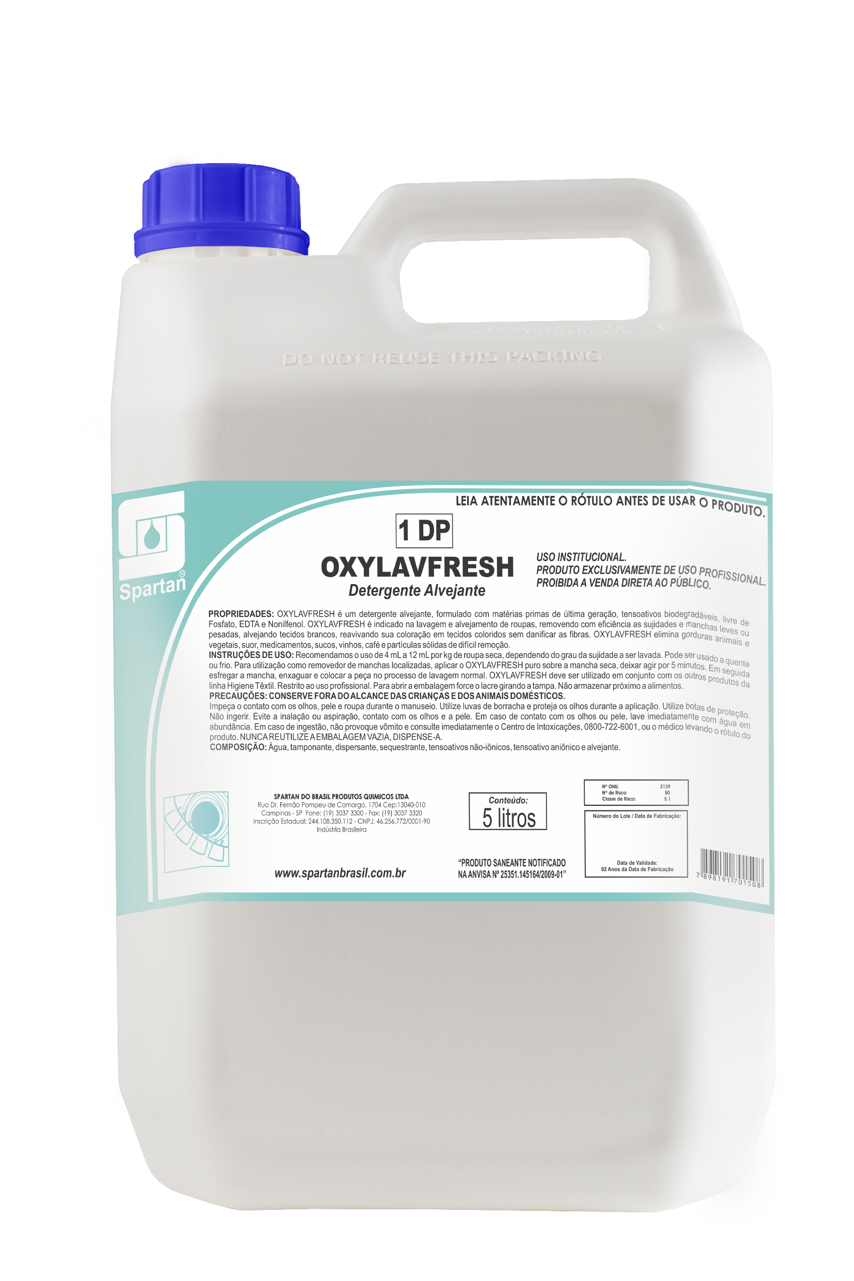 OXYLAVFRESH é um detergente alvejante para roupas, formulado com matérias primas de última geração, tensoativos biodegradáveis, livre de Fosfato, EDTA e Nonilfenol.