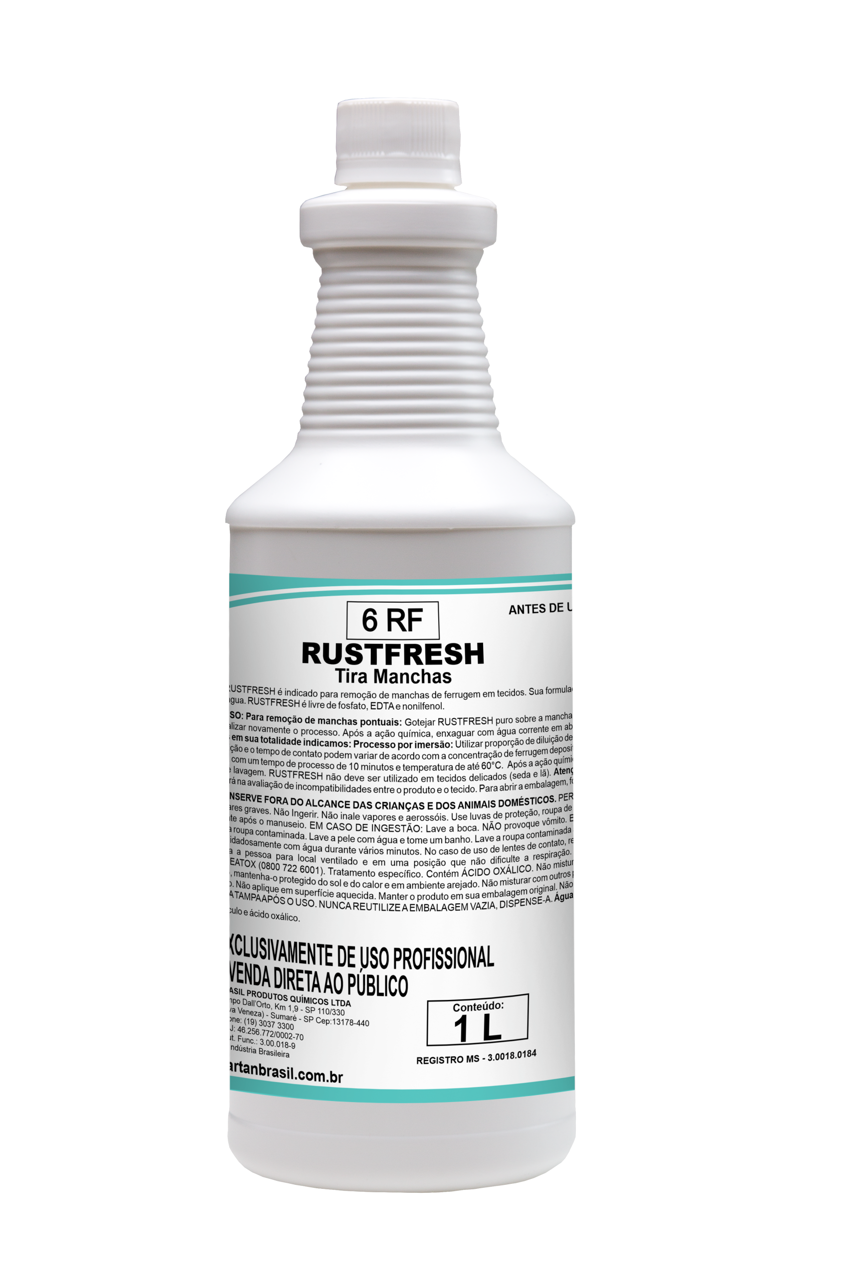 RUSTFRESH é um produto de elevada eficiência na remoção de manchas de ferrugem em tecidos. Sua formulação permite retirar todas as incrustações ocasionadas pelo depósito de ferro da água. RUSTFRESH é livre de fosfato, EDTA e nonilfenol.Instruções de uso: