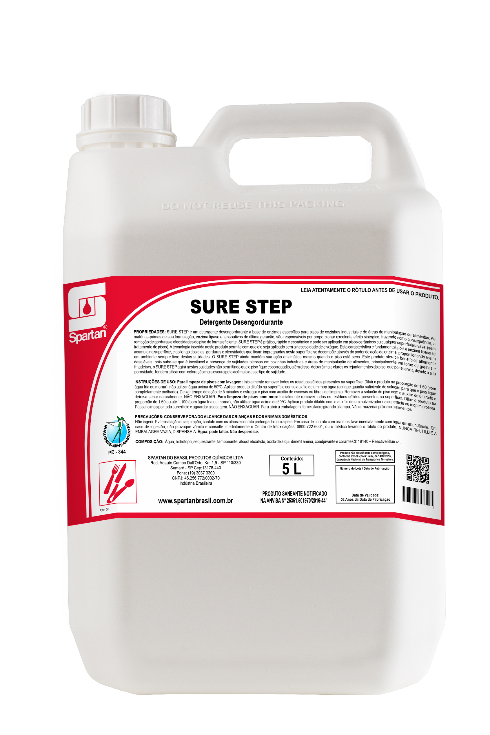 SURE STEP é um detergente desengordurante à base de enzimas, específico para pisos de cozinhas industriais e de áreas de manipulação de alimentos. SURE STEP é formulado com enzima lipase e tensoativos de última geração, responsáveis por proporcionar excelente efeito sinérgico, removendo gordura e oleosidade de pisos, de forma eficiente e sem enxágue, podendo ser aplicado em piso cerâmico, porcelanato, mármore, granito polido, cimento ou qualquer superfície lavável (sem tratamento de piso). A enzima lipase, presente no SURE STEP, se acumula na superfície e, ao longo dos dias, mesmo com o piso seco, gorduras e oleosidades que ficam impregnadas se decompõem, graças ao poder de ação da enzima, proporcionando um ambiente sempre livre destas sujidades, não permitindo que o piso fique escorregadio. O SURE STEP também clareia o rejunte, que tende a escurecer com o acúmulo de sujidade, garantindo limpeza eficiente, economia de água e segurança aos usuários.