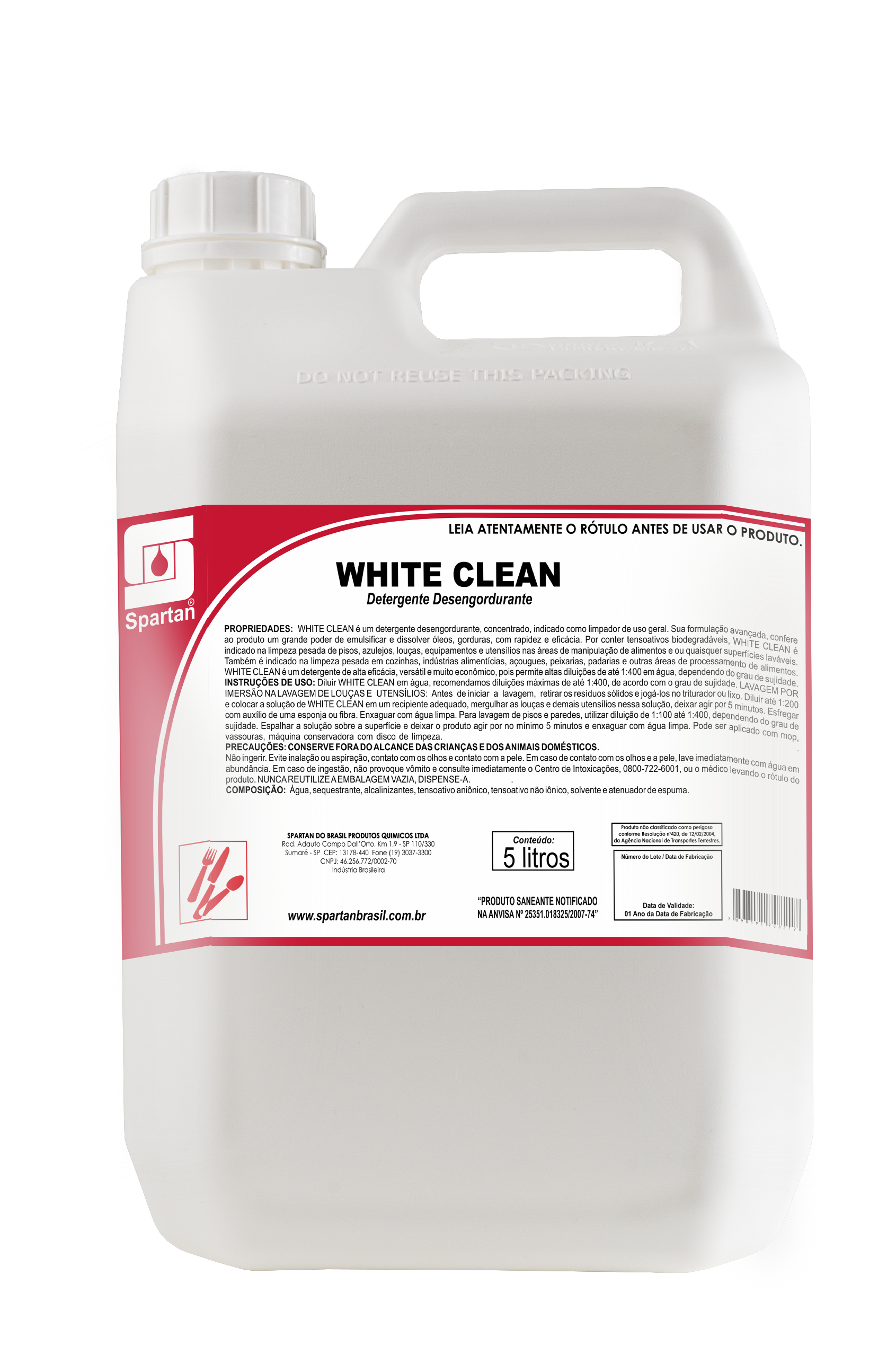 WHITE CLEAN é um detergente desengordurante concentrado, indicado como limpador de uso geral. Sua formulação avançada confere ao produto um grande poder de emulsificar e dissolver óleos, gorduras, com rapidez e eficácia. Por conter tensoativos biodegradáveis, WHITE CLEAN desengordurante é indicado na limpeza pesada de pisos, azulejos, louças, equipamentos e utensílios nas áreas de manipulação de alimentos e ou quaisquer superfícies laváveis. Também é indicado na limpeza pesada em cozinhas, industrias alimentícias, açougues, peixarias, padarias e outras áreas de processamentos de alimentos. WHITE CLEAN desengordurante é um detergente de alta eficácia, versátil e muito econômico, pois permite altas diluições de até 1:400 em água, dependendo do grau de sujidade.Instruções de uso: