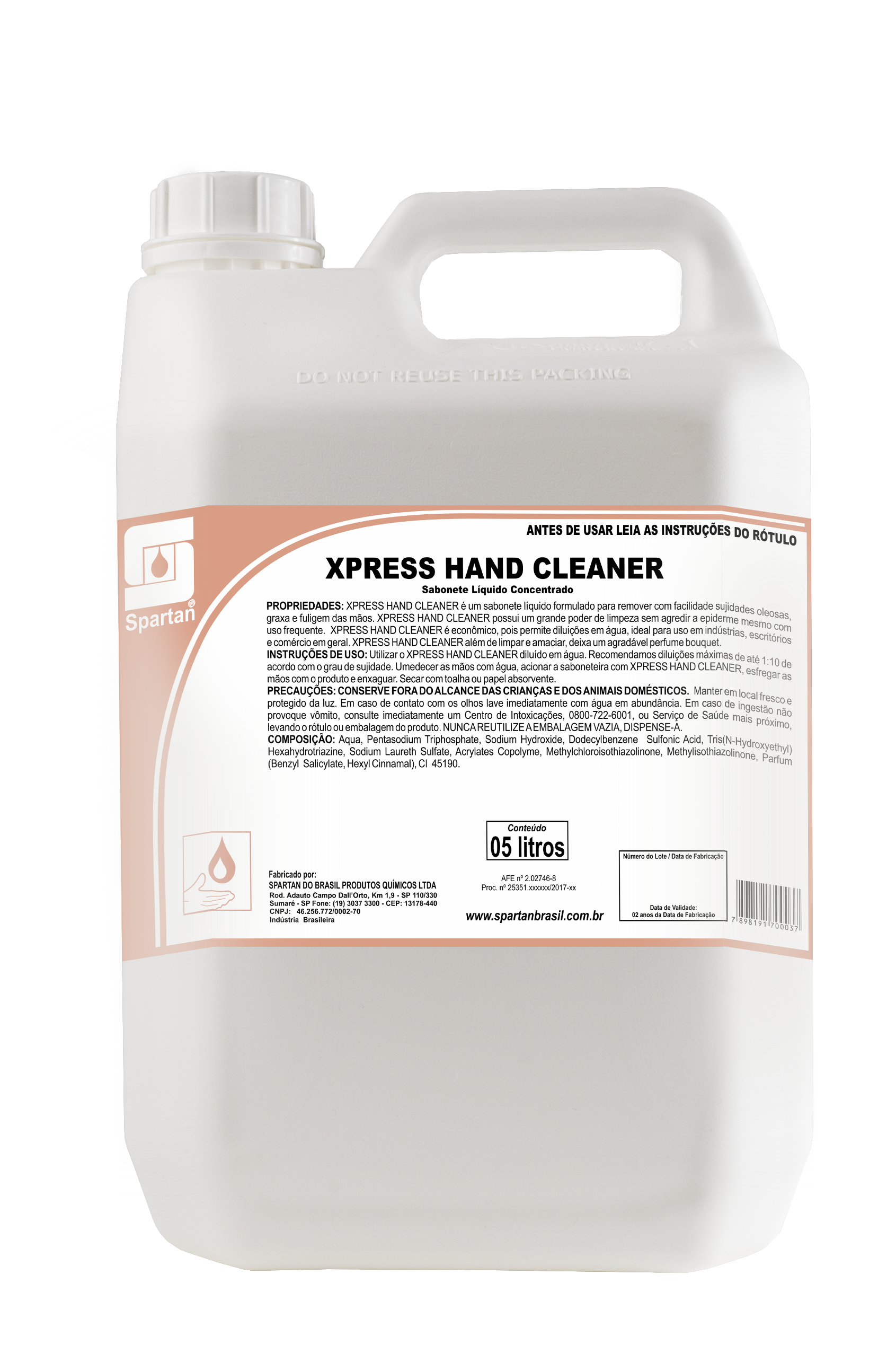 XPRESS HAND CLEANER é um sabonete líquido concentrado, desenvolvido especialmente para limpeza de sujidades pesadas, como óleo, graxa, fuligem, etc., aderidas às mãos, agindo rapidamente, limpando e deixando agradável perfume bouquet. XPRESS HAND CLEANER é ideal para indústrias em geral, construções civis e locais com sujidades pesadas. Sua fórmula concentrada garante economia em uso. XPRESS HAND CLEANER não agride a pele, mesmo com uso frequente, e deixa agradável fragrância bouquet. Produto dermatologicamente testado.
