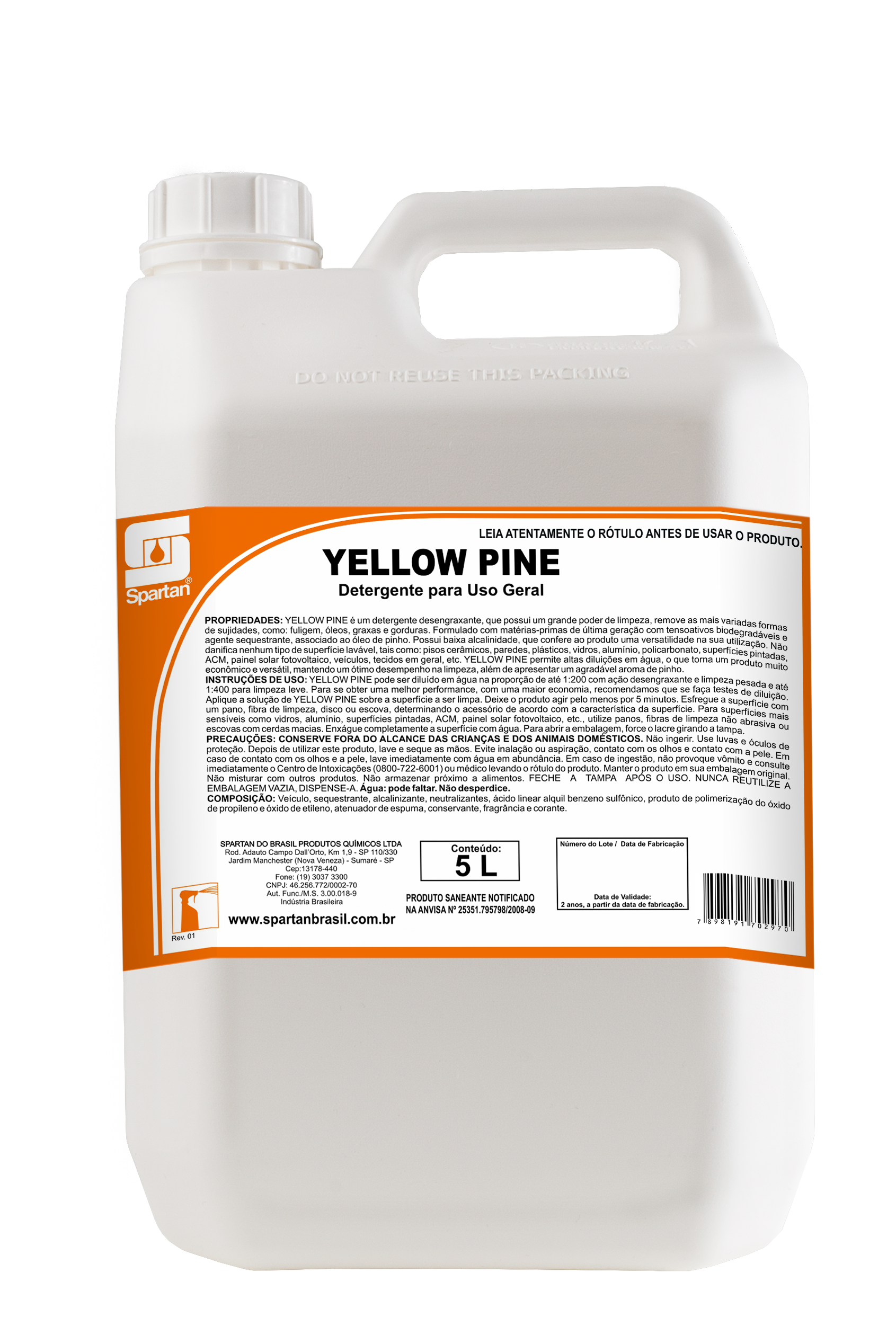 YELLOW PINE é um detergente desengraxante que possui um grande poder de limpeza, remove as mais variadas sujidades, fuligem, óleos, graxa e gordura, sem agredir o meio ambiente. Formulado com matérias primas de última geração com tenso ativos biodegradáveis e agentes sequestrantes, associado ao óleo de pinho (solvente natural), possui baixa alcalinidade, que confere ao produto uma versatilidade na sua utilização, não danifica nenhum tipo de superfície lavável, tais como: pisos cerâmicos, paredes, plásticos, vidros, alumínio, superfícies pintadas, veículos, tecidos em geral etc. detergente desengraxante